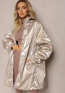 Beżowa Dwustronna Kurtka Przejściowa z Kapturem i Luźnym Fasonie Anahitta