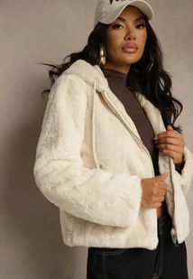 Beżowa Kurtka Futerko z Kapturem w Casualowym Stylu Nundrie