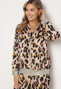 Beżowo-Różowa Kurtka Bomberka w Panterkę ze Ściągaczami Irira