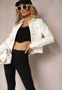 Biała Jeansowa Kurtka z Bawełny z Guzikami i Kieszeniami Ainztia