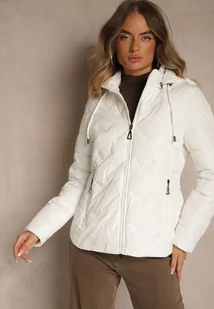 Biała Kurtka Przejściowa z Kapturem i Ozdobnym Pikowaniem Cilvessa