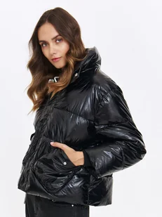 Kurtka damska dostępna w kolorze czarnym TSKW24KUR143999X00. Modelka ma 177 cm wzrostu i prezentuje rozmiar 34.