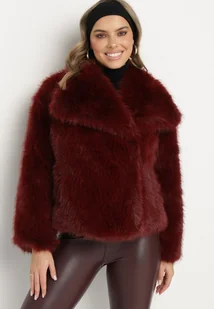 Bordowa Futrzana Kurtka Futerko z Szerokim Kołnierzem Dannora