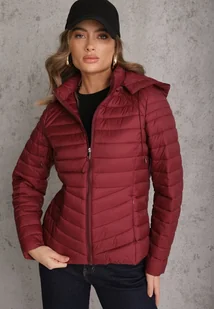 Bordowa Przejściowa Kurtka Pikowana z Kapturem z Możliwością Odpięcia Pretiga
