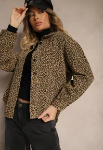 Brązowa Jeansowa Kurtka Koszulowa w Panterkowy Print Cesida