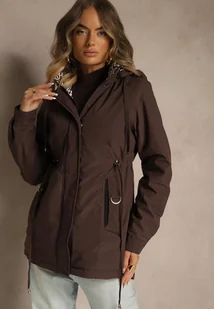 Brązowa Kurtka Parka z Kapturem w Oryginalny Wzór Wewnątrz Tiosara