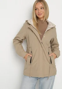 Ciemnobeżowa Kurtka Parka z Kapturem w Oryginalny Wzór Wewnątrz Tiosara