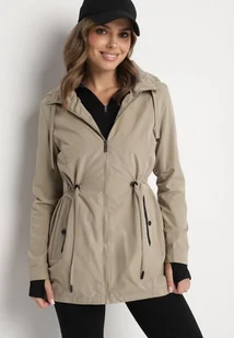 Ciemnobeżowa Kurtka Parka ze Sznurkiem w Talii i Kapturem Teridi