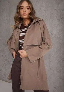 Ciemnobeżowa Kurtka Przejściowa Typu Parka z Odpinanym Kapturem Ozdobiona Sznurkami Fallaiah