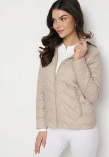 Ciemnobeżowa Kurtka z Odpinanym Kapturem Pikowana Ariobia