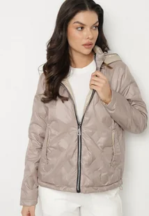 Ciemnobeżowa Pikowana Kurtka o Dwustronnym Kroju z Odpinanym Kapturem Zeorina