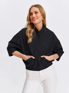 Kurtka damska Top Secret krótka o sportowym kroju. Ujmująca komfortem oraz wygodą podczas użytkowania krótka kurtka damska o sportowym i oversizowym stylu z prostymi rękawami w formie kimono o długości 3/4 zakończonymi luźnym mankietem. Posiada ona efektowny kołnierzyk na stójce i jest zapinana z przodu na chowany suwak, a u góry dodatkowo posiada zatrzask. Uroku dodają jej praktyczne kieszenie po bokach oraz ściągacz u dołu. Sprawdzi się świetnie w przeróżnych kobiecych stylizacjach wiosennych i letnich.