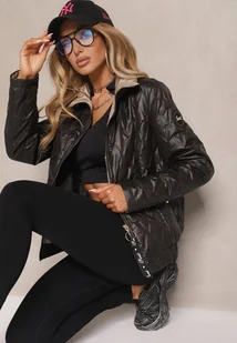 Czarna Kurtka Pikowana z Elastyczną Gumką w Pasie Zarriva