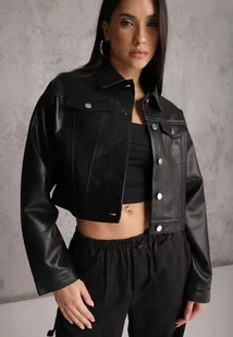 Czarna Kurtka Ramoneska Cropped o Fasonie Koszulowym Savarinda