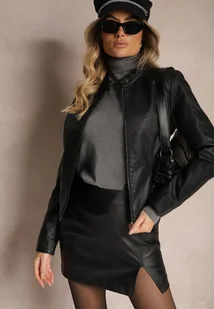 Czarna Kurtka Ramoneska o Taliowanym Motocyklowym Kroju ze Stójką Delorine