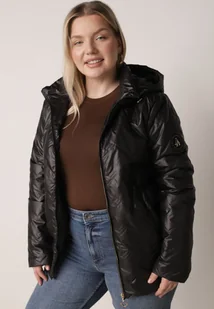 Czarna Pikowana Kurtka Przejściowa o Prostym Kroju z Kapturem Vimoris