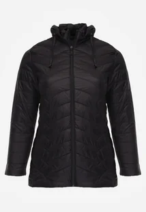 Czarna Pikowana Kurtka Przejściowa z Kapturem o Taliowanym Kroju Lissanoria