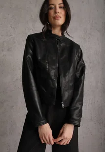 Czarna Taliowana Kurtka Ramoneska Y2K ze Stójką Fezilae