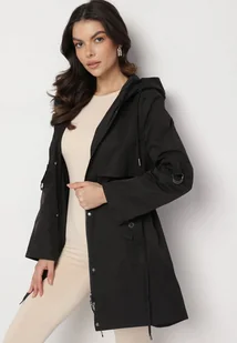 Czarny Płaszcz Kurtka Przeciwwiatrowa z Kapturem Amilina