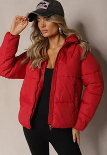 Czerwona Kurtka Pikowana Wykończona Kapturem Aviatoria