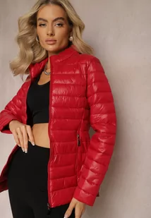 Czerwona Przejściowa Kurtka Pikowana z Zasuwanymi Kieszeniami Asethalia