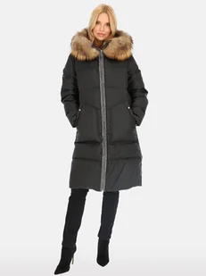 Elegancka puchowa kurtka damska z kontrastowym lampasem Czarny XXL