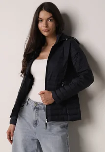 Granatowa Pikowana Kurtka Przejściowa z Kapturem z Lamówką i Ściągaczami Zidara