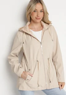 Jasnobeżowa Kurtka Parka Dwustronna ze Ściągaczem w Talii i Kapturem Tillisaya
