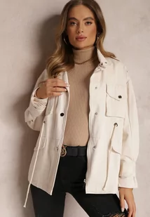 Jasnobeżowa Kurtka Parka z Dużymi Kieszeniami Umaila