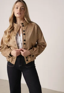 Jasnobrązowa Kurtka w Stylu Bomberki z Ozdobnymi Guzikami Polimi