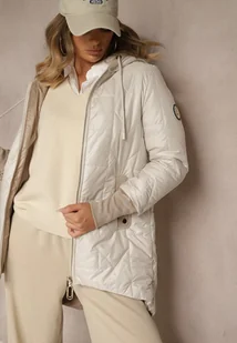 Jasnoszara Kurtka z Pikowanymi Przeszyciami Kapturem i Dłuższym Tyłem Tuleina