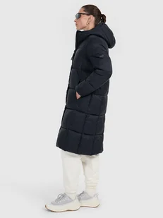 S Puchowy płaszcz damski na zimę – ciepło, lekkość i swoboda ruchów: Hydrofobowa warstwa zewnętrzna impregnacja chroni materiał przed nasiąkaniem wodą podczas kontaktu z wilgocią Lekka i ciepła ocieplina poliestrowe wypełnienie grzeje bez obciążania, jest miękkie i łatwe w pielęgnacji Zintegrowany kaptur z regulacją dopasowanie głębokości z tyłu pozwala lepiej chronić głowę przed zimnem Dwukierunkowy zamek z plisą zapinanie na suwak zabezpieczone zewnętrzną listwą na napy chroni przed wiatrem Dwie otwarte kieszenie boczne łatwy dostęp do najpotrzebniejszych drobiazgów na co dzień Elastyczne wykończenie rękawów gumki w mankietach pomagają zatrzymać ciepło wewnątrz kurtki Wygodny krój regular fit dopasowuje się do sylwetki i daje swobodę ruchów w każdej sytuacji Długość do kolan lepsza ochrona przed zimnem i wiatrem w chłodniejsze dni Płaszcz damski z ociepleniem i hydrofobową powłoką – niezawodny w zmienną pogodę Szukasz płaszcza, który ogrzeje Cię w chłodne dni i nie zawiedzie w kontakcie z wilgocią? Hydrofobowa warstwa zewnętrzna chroni materiał przed nasiąkaniem wodą, a lekka ocieplina z poliestru skutecznie grzeje bez zbędnego obciążenia. Zintegrowany kaptur z regulacją głębokości dobrze osłania głowę przed wiatrem i zimnem. Dwukierunkowy zamek z plisą na napy to pewne zabezpieczenie przed chłodem – od dołu i od góry. Elastyczne rękawy pomagają zatrzymać ciepło, a kieszenie boczne dają szybki dostęp do najpotrzebniejszych rzeczy.