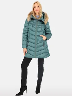 Kurtka damska zimowa w stylu casual z futrem jenota S Szmaragdowy