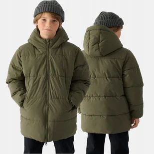 4F Długi płaszcz puchowy z syntetycznym wypełnieniem damski - turkusowy XS