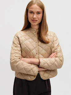 Pikowana kurtka w kolorze beżowym to doskonały wybór na chłodniejsze dni. Jej ponadczasowy design łączy elegancję z funkcjonalnością. Pikowany wzór dodaje jej klasycznego charakteru, a delikatna stójka zapewnia dodatkową ochronę przed wiatrem. Kurtka jest zapinana na napy, co podkreśla jej nowoczesny wygląd. Beżowy kolor sprawia, że jest uniwersalna i łatwa do zestawienia z różnymi stylizacjami, zarówno codziennymi, jak i bardziej formalnymi.