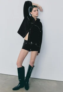 Stradivarius Krótka jeansowa koszula wierzchnia z ćwiekami CZARNY DENIM XL