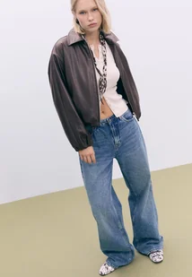 Stradivarius Pikowana bomberka ze sztucznej skóry Brązowy S