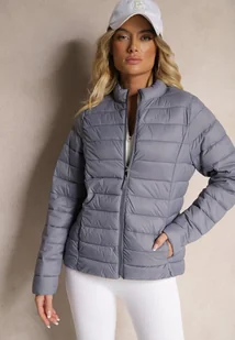 Szara Casualowa Kurtka Ozdobiona Pikowaniem Nelionea