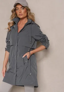 Szara Kurtka Parka z Kapturem i Regulowanymi Troczkami Isalene