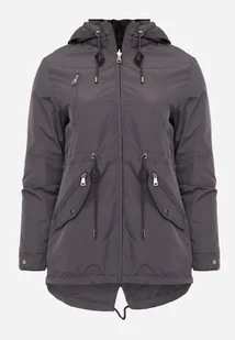 Szaro-Czarna Przejściowa Kurtka Dwustronna o Kroju Parki z Pikowaniem Wewnątrz Zidelle
