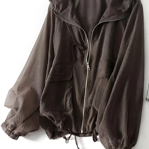 TEMU Damska Lekka i Oddychająca Kurtka Wiosenna - Luźny Top JU, Kryjący Figurę, Modny Cienki Płaszcz z Kapturem i Sznurkiem