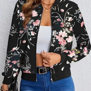 TEMU Lekka Kurtka Damska - Kurtka Wierzchnia na Zamek z Geometrycznym Wzorem i Kołnierzem Baseballowym, Odpowiednia na Codzienne i Formalne Okazje na