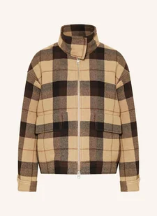 Prosty krój. Stójka. Poduszki na ramionach. Zapięcie na zamek błyskawiczny. Kieszenie z patką. Mankiet z jednym guzikiem. Gładka podszewka. Detale z marką. Wzór karo. Miękki w dotyku materiał. Z wełny