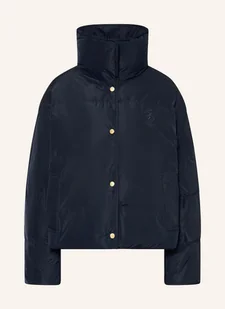 Elastyczna wstawka przy rąbku. Pikowana podszewka. Wypełnienie z puchu i pierza. Materiał hydrofobowy. Detale z marką.