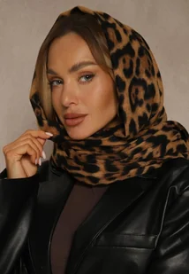 Brązowy Panterkowy Szalik z Wiskozy Zdobiony Frędzlami Ferialda