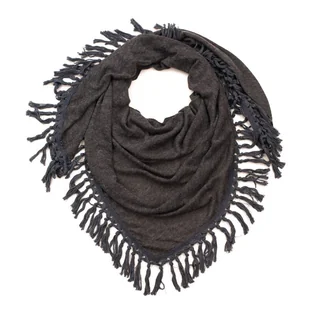 Duża, mięsista chusta zakończona frędzlami.Wykonana z miękkego materiału z dodatkiem wełny.O trójkątnym kształcie.Doskonały wybór na chłodne dni.