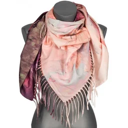 100 % wiskoza Pranie ręczne, można prasować. Wymiary chusty: 110 cm x 110 cm + 8 cm frędzle po dwóch stronach