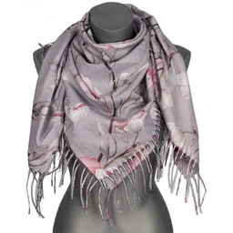 100 % wiskoza Pranie ręczne, można prasować. Wymiary chusty: 110 cm x 110 cm + 8 cm frędzle po dwóch stronach