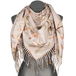 Chusta damska przejściowa w KWIATY na prezent z frędzlami RCC28-3 ecru