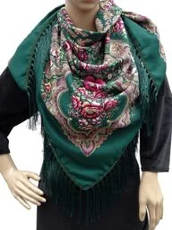 Chusta góralska ludowa folk kwiaty zielona z różem